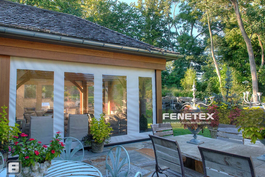 Fenetex® manufactures their weather curtains with Serge Ferrari Soltis Proof 502® fabrics and flame-resistant clear vinyl. With added outdoor heaters, your customers (or house guests) will forget they’re even outside.